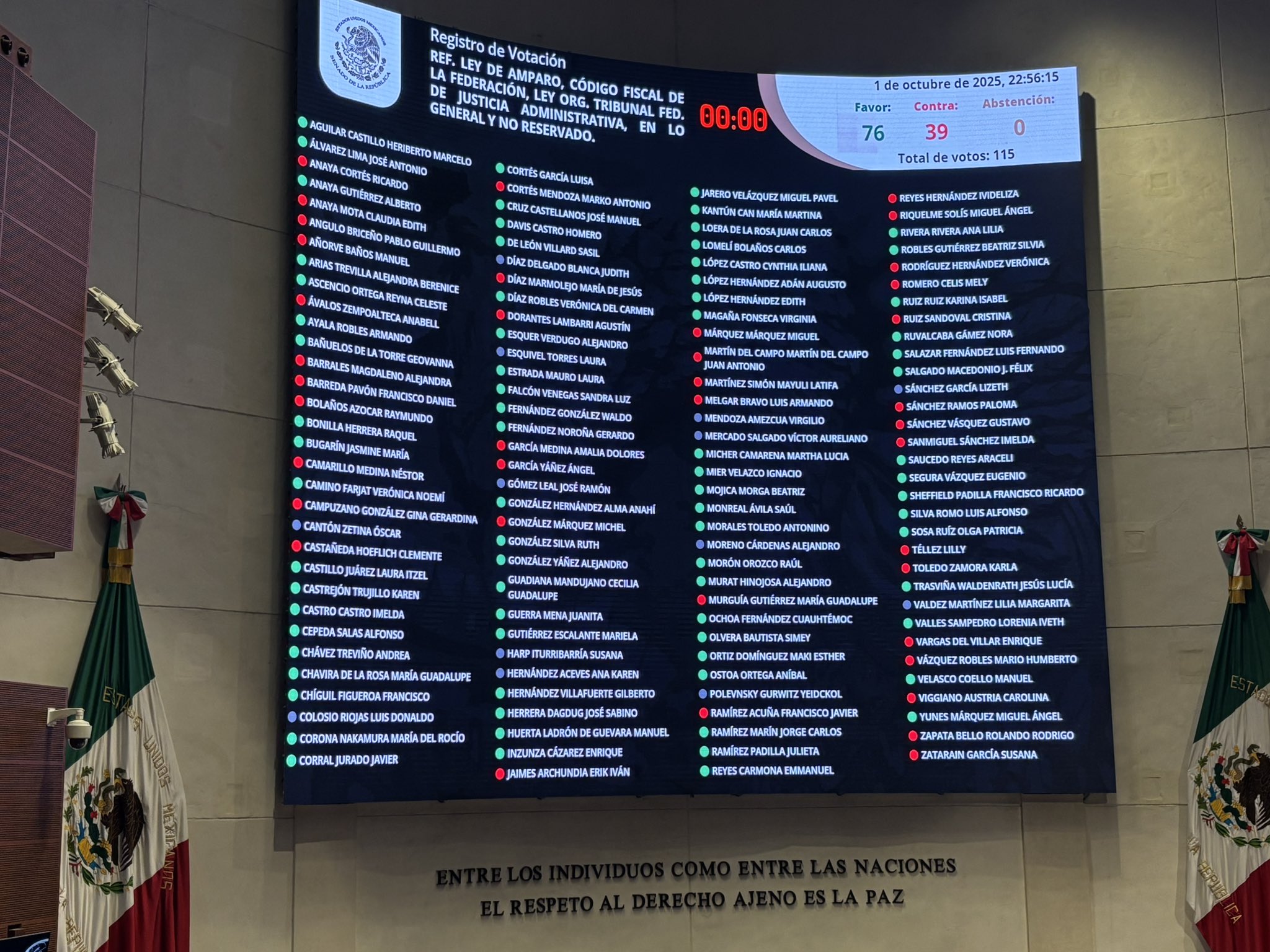CDMX, 02 octubre 2025.- La reforma a la Ley de Amparo fue aprobada en las primeras horas de este jueves 2 de octubre en el Senado con 70 votos a favor y 39 en contra, gracias al apoyo de Morena y sus aliados.