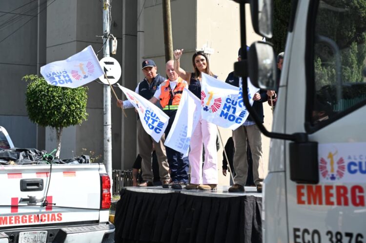 La alcaldesa Alessandra Rojo de la Vega encabezó el evento de salida, donde reconoció la labor de los trabajadores de la Dirección General de Servicios Urbanos y de Protección Civil, así como el respaldo de la ciudadanía.