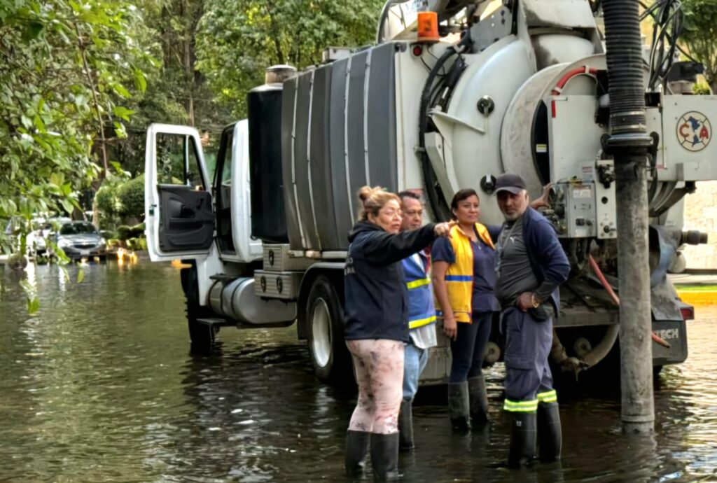 CDMX, 11 octubre 2025.- Este viernes se registró la lluvia más intensa de la temporada en la zona centro y sur-oriente de Coyoacán, lo que ocasionó anegaciones y saturación de la red hidráulica que afectó algunas zonas de la demarcación, las cuales han sido atendidas por personal de Protección Civil, Escudo Coyoacán y Servicios Urbanos, en coordinación con servicios de emergencia del gobierno capitalino.