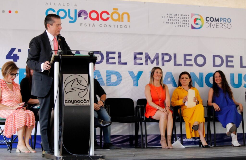 La de 4ª Feria del Empleo de la Diversidad y la Inclusión se realizó en el Jardín Centenario, en el centro de Coyoacán, donde más de 50 empresas de primer nivel ofertaron un aproximado de dos mil vacantes para la población LGBT+, adultos mayores, personas con discapacidad, mujeres y juventudes.