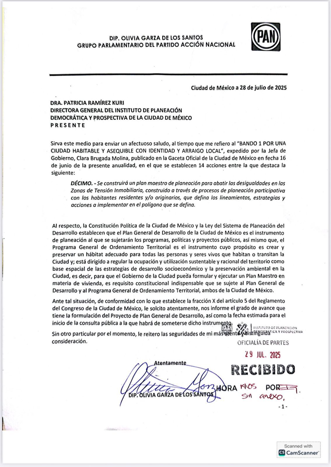 CDMX, 06 de agosto de 2025. — La falta de transparencia y el aparente desvío de funciones del Instituto de Planeación Democrática y Prospectiva fue duramente cuestionado por la diputada panista, Olivia Garza, quien acusó a la institución de anteponer actividades político-partidistas por encima de sus responsabilidades legales.
