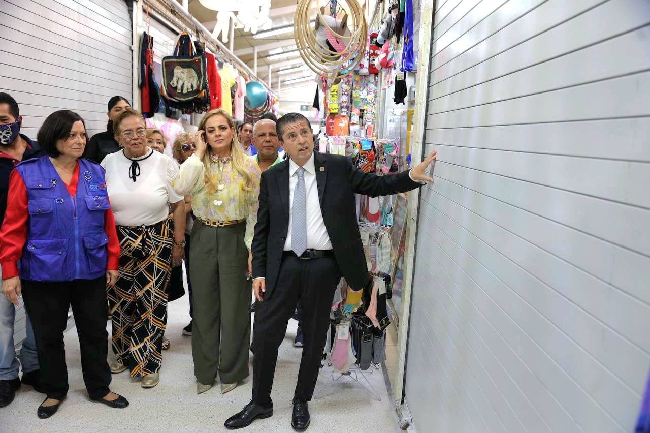 Junto con los directores generales de Gobierno y Asuntos Jurídicos, Roberto Sánchez Lazo; Obras Públicas y Servicios Urbanos, Martha Elguea Viniegra y de locatarios, Gutiérrez Aguilar, acompañado de su esposa, cortó el listón inaugural y sostuvo que estos trabajos no sólo mejorarán la experiencia de compra de los usuarios, sino que también fomentarán un ambiente más atractivo, funcional y de seguridad para comerciantes.