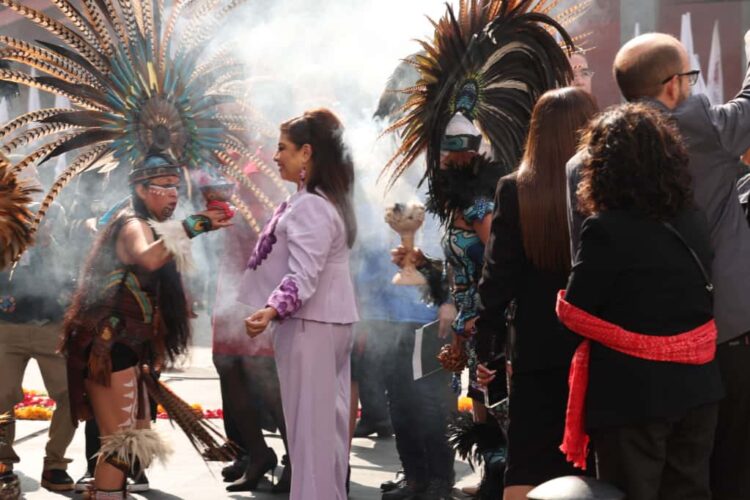 Con 47 minutos de retraso, debido a que la funcionaria fue recibida por danzantes, bailes prehispánicos, rituales y la entrega del Bastón de Mando, a cargo de una anciana y una profesora universitaria, la funcionaria presumió la coordinación con la Secretaría de Seguridad Ciudadana para reducir delitos de alto impacto en zonas específicas.