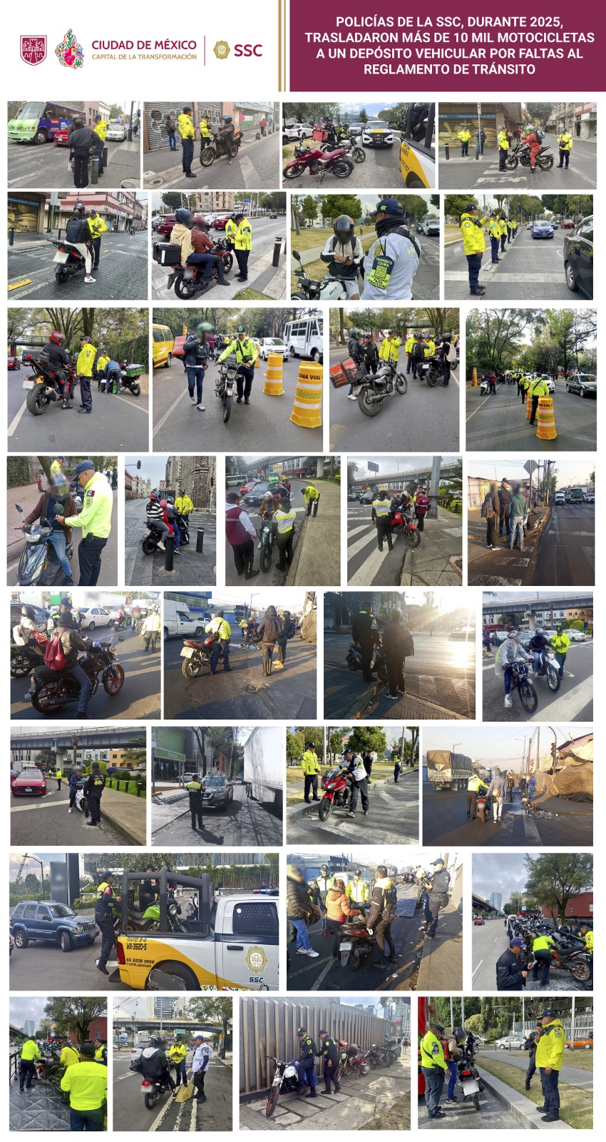 En total, 10 mil 259 motocicletas fueron trasladadas a depósitos vehiculares tras 547 operativos, principalmente por incumplir normas de seguridad como portar casco, documentación en regla o invadir carriles confinados.