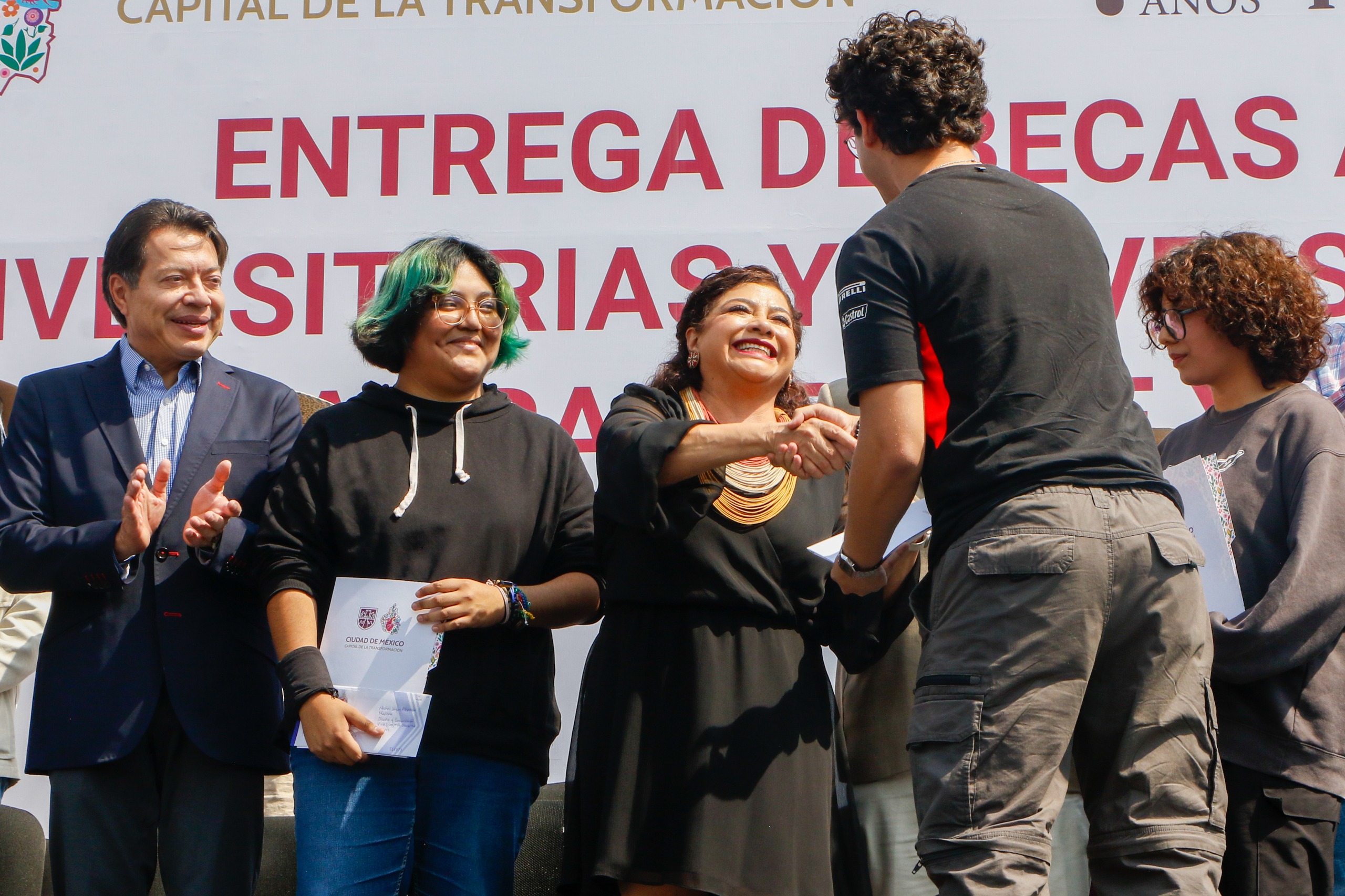Por la mañana entregó la primera parte a 25 mil 200 jóvenes y en la tarde lo hará al mismo número de estudiantes. El requisito, dijo, es que vivan en la Ciudad de México, pero si viven en la Ciudad de México y estudian en el área metropolitana, por el hecho de vivir en la Ciudad de México, van a recibir su beca, es decir, es universal a todos los jóvenes que estudian, que viven aquí en la Ciudad de México y que estudian universidad. «Son dos requisitos: vivir en la Ciudad de México y estudiar en la escuela pública. Esos son los requisitos. Y todas y todos van a recibir este apoyo», aseveró.