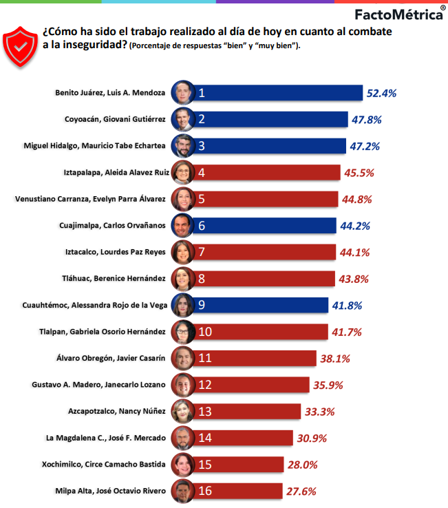 El trabajo realizado por la petista durante estos primeros seis meses, la mantiene como una de las peores alcaldesas en la capital del país. De acuerdo a algunas mediciones, el 37% de xochimilcas consideran que ha hecho su trabajo, es decir, 3 de cada diez personas tiene la percepción de que su administración busca resolver los problemas en Xochimilco.